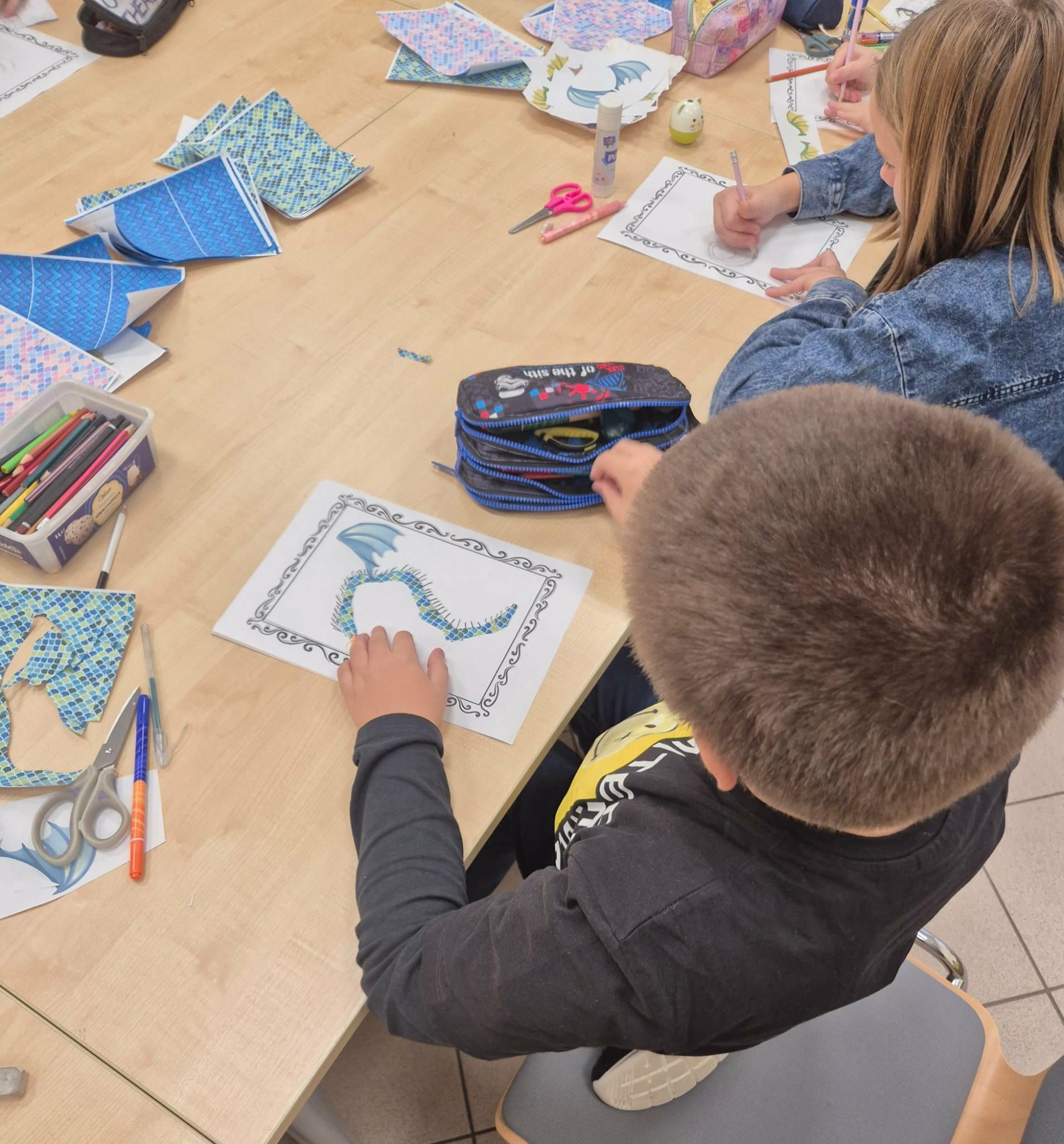 • Klasy czwarte uczestniczyły w wyjątkowych zajęciach czytelniczych „Rekrutacja do SOS – stwórz swojego magicznego stwora!”, inspirowanych książką Anny Nowackiej SOS. Stowarzyszenie Obrońców Smoków.
